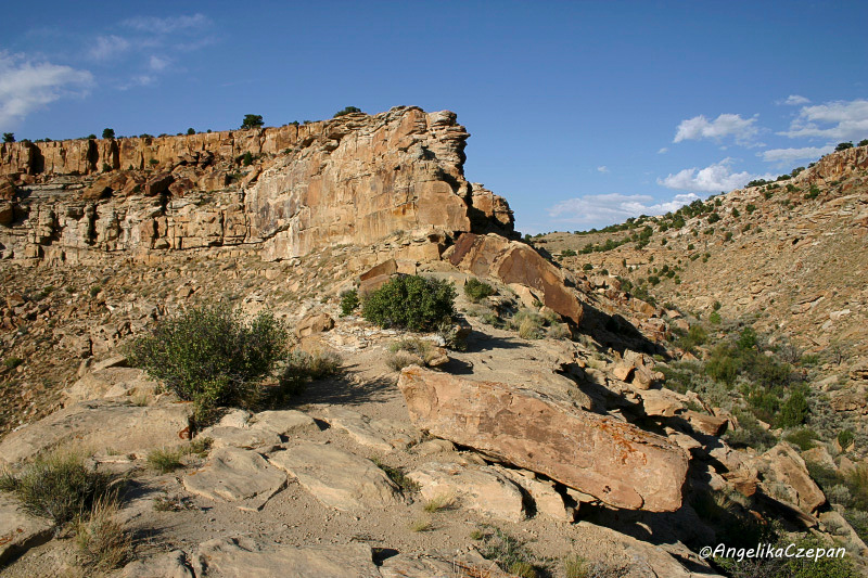 Von Castle Dale fährt man auf dem Hwy10 nach Ferron und von dort weiter nach Süden, bis man in der Nähe des Milepost 16 zu einem grünen Schild mit der Aufschrift 'Moore' kommt, das den Beginn der Moore Cutoff Road markiert. Man folgt dieser geteerten Straße ein kurzes Stück nach Osten und biegt dann bei dem braunen BLM-Schild mit der Aufschrift 'Rock Art Panel' nach rechts ab auf eine ziemlich kurvige und schmale Gravel Road, die nach weiteren 5 Meilen an einem großen Parkplatz endet. Die Gravel Road ist in recht gutem Zustand und auch von PKW problemlos befahrbar.