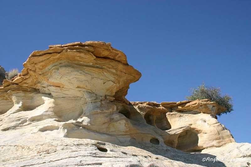 Zu ihnen gehören die Ghost Rock Rest Area (Mile Marker 122) und die Spotted Wolf Viewing Areas (nahe Mile Marker 143), bei den letztgenannten vor allem diejenige auf der Fahrt Richtung Osten (Green River), denn sie bietet vom Ende eines kurzen Trails oben auf einem schmalen, exponierten Felsgrat einen einmaligen Panoramablick auf die von tief eingeschnittenen Canyons flankierte Interstate, die sich wie ein schmales, silbernes Band bis zum Horizont erstreckt.