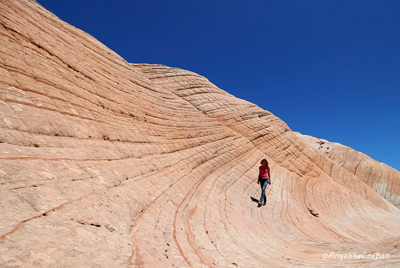 Bei den Yant Flats handelt es sich um ein steil abfallendes Felsengebiet aus sanft geschwungenen, versteinerten Sanddünen, die sich am oberen Rand des Cottonwood Canyon entlangziehen. Interessant ist vor allem die ungewöhnliche Oberflächenstruktur und die feine Maserung dieser Dünen, deren lang gezogene Streifen, Felskissen und bizarr ineinander verdrehte Wirbel immer wieder neue, interessante Muster bilden. Besonders schön ist diese Wanderung im späten Frühjahr, wenn rechts und links des Wegs zu den Felsen die Kakteen und Wildblumen blühen.