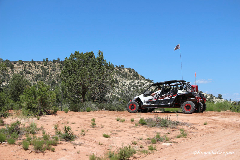 Hinweis: wer mit einem Geländewagen bzw. einem Fahrzeug mit High Clearance unterwegs ist, kann als Alternative für den Rückweg der ungeteerten FR031 weiter nach Westen folgen. Dies sind 13 Meilen Dirt Road plus 2,5 Meilen Teerstraße, wobei die ersten 8 Meilen sehr ruppig und ausgewaschen sind, mit vielen tiefen Spurrillen, Schlaglöchern und Steinen. Im weiteren Verlauf geht die Piste dann in eine breite, gut befahrbare Gravel Road über und schließlich in die geteerte Old Dump Road / Cottonwood Springs Rd., die am nordöstlichen Stadtrand von St. George in den E Red Hills Pkwy mündet.