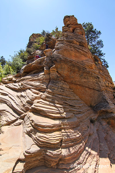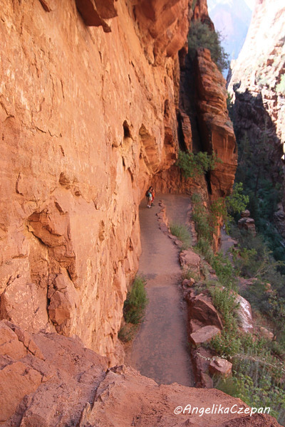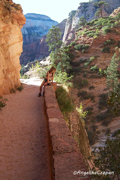 Ist der erste Teil des Weges bis Scout Lookout noch von jedem, der über ausreichend Kondition verfügt, gut machbar, ist für den zweiten Teil schon etwas Mut und Geschicklichkeit erforderlich, denn aus dem Wanderweg wird nun eine Art Klettersteig, der an den besonders exponierten und abschüssigen Stellen durch lange Stahlseile und Ketten abgesichert ist. Dieser Teil des Weges, bei dem es auf einer Distanz von 0,5 Meilen nochmals 150 Höhenmeter zu überwinden gilt, ist definitiv nichts für Leute mit Höhenangst und sollte auch nur dann begangen werden, wenn kein Gewitter droht, denn der Felsvorsprung ist ebenso wie der lange, exponierte Grat extrem blitzschlaggefährdet!