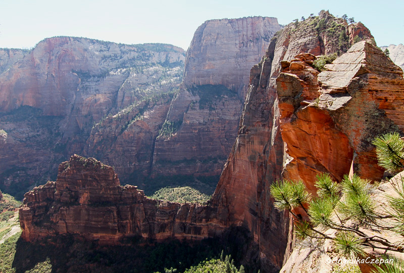 Ausgangspunkt dieser abwechslungsreichen und spannenden, aber auch sehr anstrengenden Tour ist der Shuttle-Stopp ‚The Grotto' im Zion Canyon. Blickt man von hier aus nach Norden, erkennt man auf der linken Talseite bereits das Ziel dieser Wanderung, einen gewaltigen Felsmonolithen, der wie ein überdimensionaler Schiffsbug in den Zion Canyon hineinragt. Was man aus dieser Perspektive allerdings noch nicht erkennt, ist der schmale Grat, der auf diesem Felsrücken entlangführt und an einem 450 Meter oberhalb des Tals gelegenen Felsvorsprung mit dem schönen Namen Angels Landing endet.