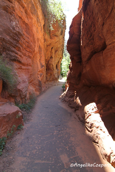 Eine schöne Alternative führt von der Abzweigung zum Hidden Canyon nach links weiter dem East Rim Trail folgend bergauf. Hinter zwei Biegungen gelangt man zu einen kurzen, aber äußerst sehenswerten Slot Canyon, den man auf halber Höhe auf einem in den Felsen gesprengten Weg durchquert. Ein weiteres mögliches Ziel ist von hier aus der Observation Point mit tollem Rundumblick auf den in der Tiefe gelegenen Zion Canyon.